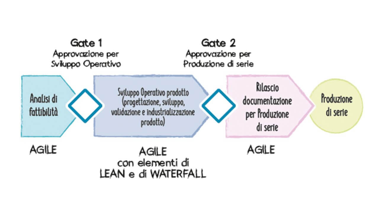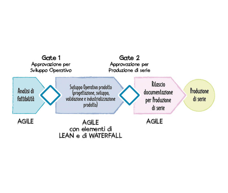 L’approccio Agile, iterativo e incrementale è un approccio adattivo che, in particolare per i prodotti fisici, deve quindi integrare diversi punti di verifica, alcuni dei quali rappresentano dei veri e propri cancelli o sbarramenti da superare per proseguire con lo sviluppo.